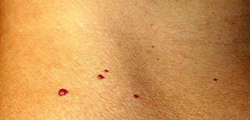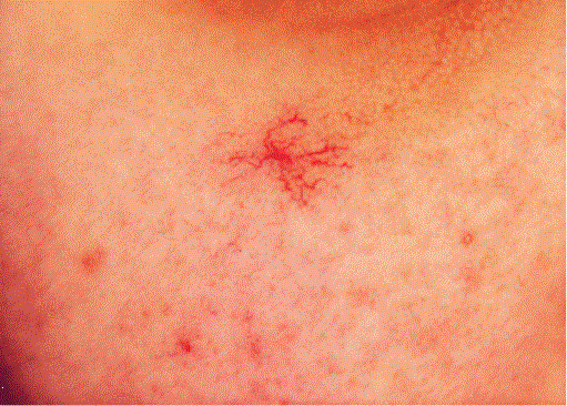 Spinnennävi finden sich meist in der oberen Körperhälfte (Gesicht, Nacken & Hände). Sie sind die häufigste Form einer Teleangiektasie.